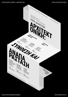 Η Σχολή Αρχιτεκτόνων μηχανικών του Πολυτεχνείου Κρήτης οργανώνει για την Άνοιξη 2026 σειρά διαλέξεων με γενικό θέμα ΑΡΧΙΤΕΚΤΟΝΙΚΗ: ΣΥΝΘΕΣΗ & ΑΝΑΠΑΡΑΣΤΑΣΗ, όπου διακεκριμένοι/ες αρχιτέκτονες θα παρουσιάζουν το έργο τους αναφερόμενοι παράλληλα στον διάλογο ανάμεσα στην αρχιτεκτονική σύνθεση και την αναπαράσταση.